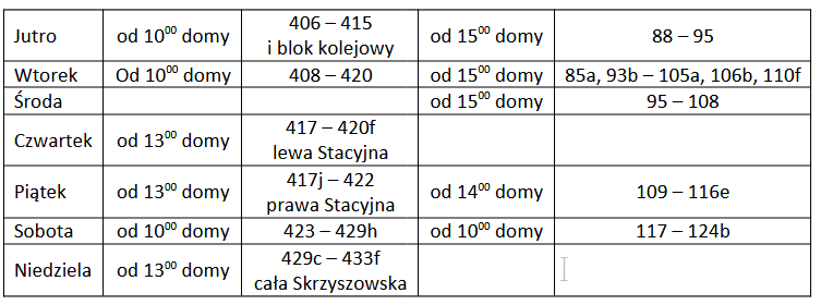 Porządek kolędy na rozpoczynający się tydzień będzie następujący: