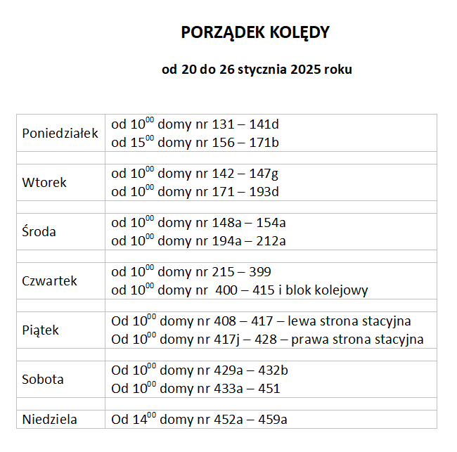 Porządek Kolędy od 20 do 26 stycznia 2025 roku